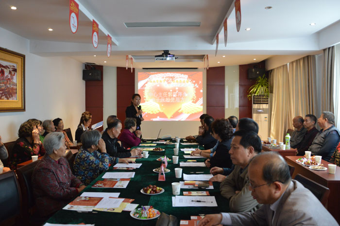 最后由老龄办主任张爱梅发表重要讲话:来参加由晋城市饮食服务有限公司举办的“九九重阳节,浓浓敬老情” 电子保姆发放启动仪式,一方面,我能感受到公司领导班子成员对广大退休职工的关爱之情;另一方面,公司要继续做好老年职工的关爱工作,不断提高老年人的幸福指数,使老年职工健康长寿;同时也希望通过社区服务网络中心为老服务信息平台及电子保姆,能给更多的老人生活提供便利,让中心的为老服务工作做得更细、走得更远!
