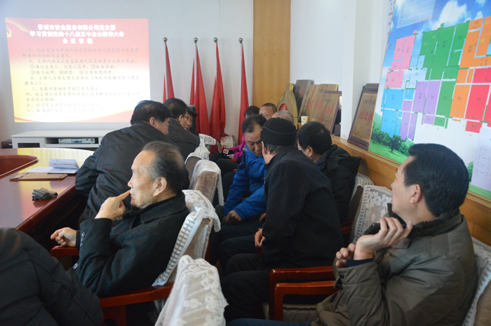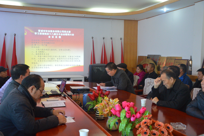 2015年11月26日下午,晋城市饮食服务有限公司党支部召开学习贯彻党的十八届五中全会精神大会,公司党支部全体党员参加此次会议。