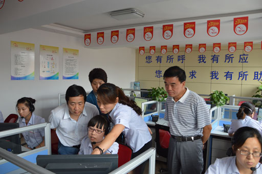 2012年9月5日,晋城市民政局靳慧萍副局长和基政科郭四茂科长,亲临我中心视察指导工作,在呼叫中心与公司领导谈话。