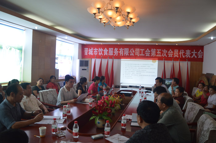 2013年8月22日上午,晋城市饮食服务有限公司工会第五次会员代表大会在公司会议室隆重召开,按照《中国工会章程》和公司工会制定的换届选举方案,根据公开、公平、公正的原则,实行公开选举,现场监票、计票、统计,最终分别选出工会委员会委员、主席,经费审查委员会委员、主任,女职工委员会委员、主任,市总工会组织部王沫路部长现场参与、监督整个选举过程,并作讲话,公司党支部书记,董事长程建祥,作总结发言,鼓励新一届工会领导班子,团结奋进、拼搏进取,为广大职工办实事、谋福利、扶贫助困、排忧解难,带领广大职工为公司的发展贡献自己的一份力量。