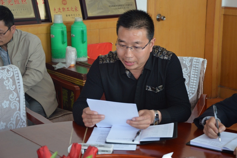 赵晋霞同志宣读习总书记在调研兰考县党的群众路线教育相关资料