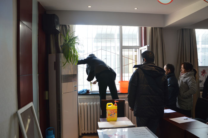 学员们现场演示如何擦玻璃及注意事项