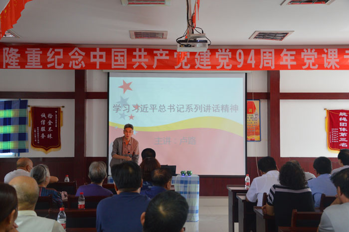 为了纪念中国共产党建党94周年,2015年6月30日,由晋城市饮食服务公司党支部承办的党课专场在商业大厦六楼举行,公司全体党员、干部、机关全体认真参与,邀请晋城市市委党校副校长卢路授课,授课内容是《关于习近平总书记系列讲话精神》。